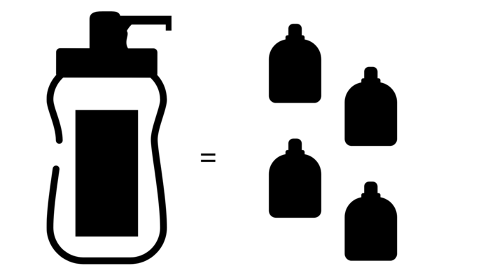 - El formato de 480ml sirve para rellenar hasta 8 mini botes (60ml) o dos de los más grandes (240ml).
