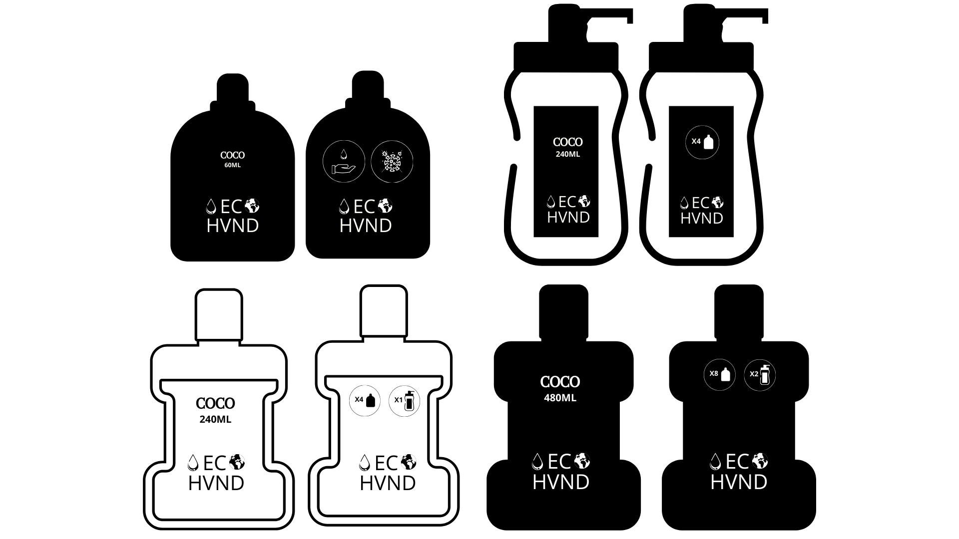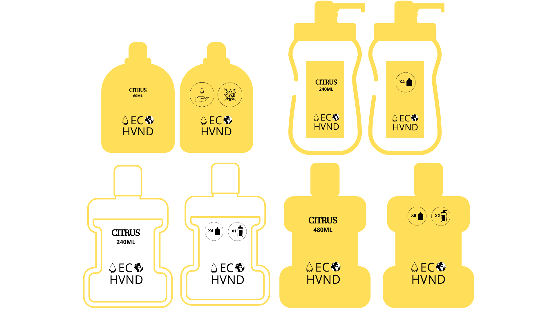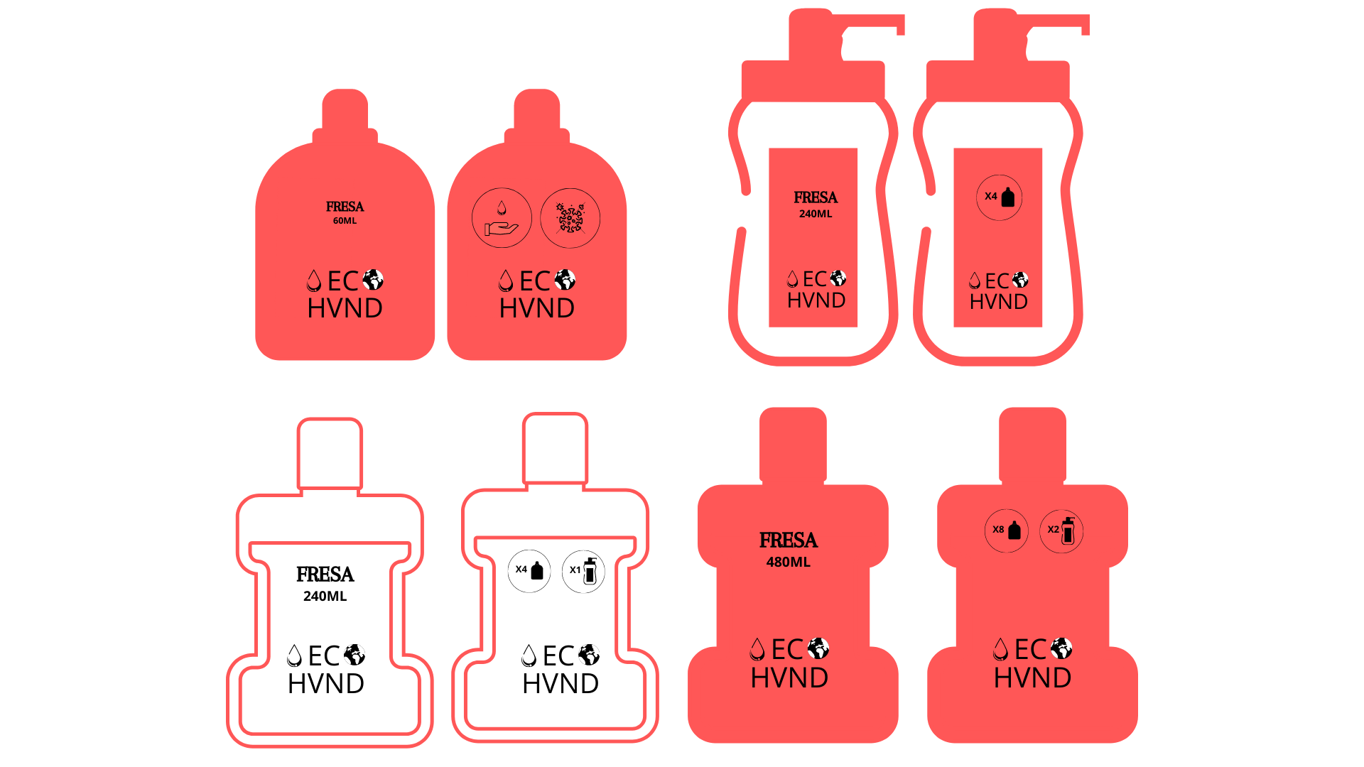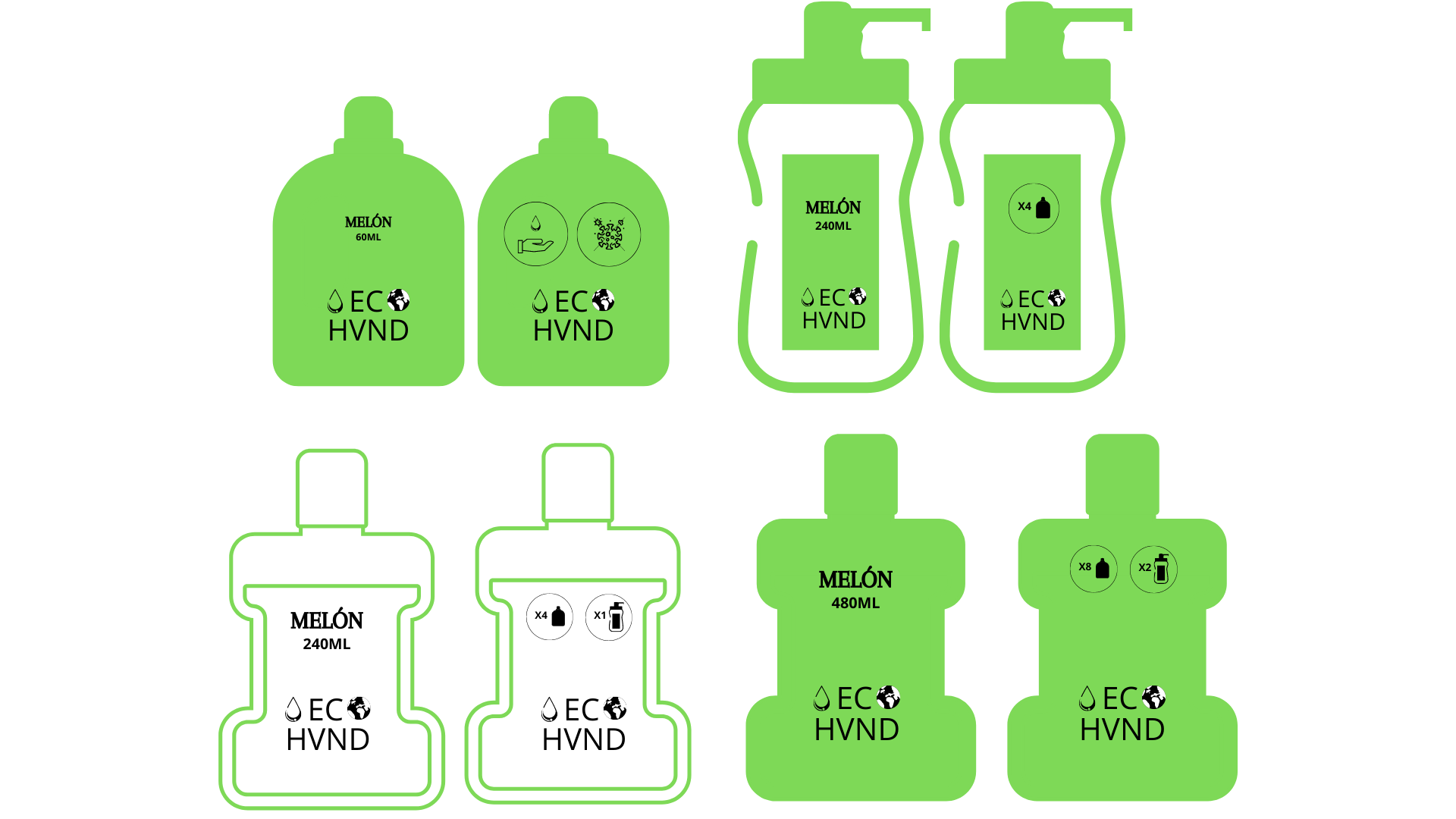ECO- HVND, escrito en mayúscula y con una especia de A invertida, es el producto estrella de ECO- Friends de esta temporada debido a la situación de pandemia actual. Por ello le da un trato especial con un logo diferente al resto y promocionándolo de forma independiente.